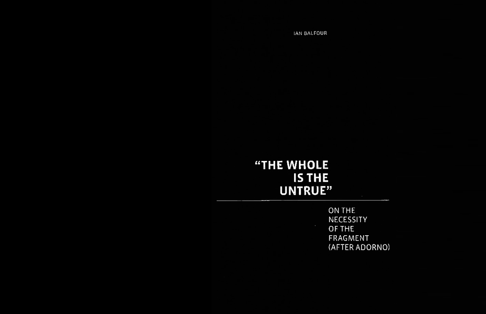 "The Whole is the Untrue", concepto teorizado por Theodor Adorno, sostiene que intentar abarcar la totalidad de una situación o fenómeno conduce a una comprensión incompleta o distorsionada. La realidad, en su complejidad y multiplicidad, no puede ser capturada en su totalidad por narrativas generales o teorías grandiosas. En cambio, Adorno propone un enfoque que abraza la fragmentación y busca descubrir las complejidades ocultas dentro de ella. La composición por partes, como se analiza en el libro de Capitel, refleja en cierto modo este concepto de fragmentación. Al descomponer un edificio en sus partes constituyentes y examinar cómo se interconectan y relacionan entre sí, podemos obtener una comprensión más profunda de la totalidad. Cada parte, con sus características y funciones únicas, contribuye a la experiencia espacial general del edificio.